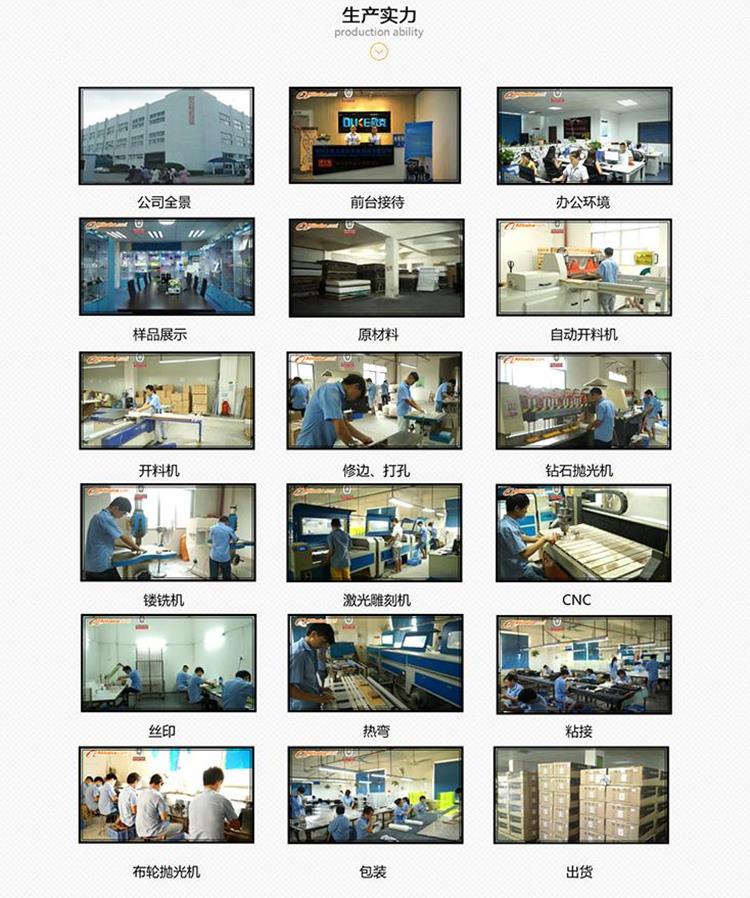 欧克有机玻璃是一家专注于有机玻璃制品研发生产多年,拥有国内先进的亚克力加工技术的公司。目前厂房总面积3000多个平方,工厂的加工设施齐全,拥有自己的加工工厂,加工人员100多人,承接各类有机玻璃制品的制作生产。通过多个权威性验证(ISO/SGS/FDA/BV),使您能在使用我们的产品过程中更加的安心。作为广东地区较大的亚克力供应商之一,我们的生产实力雄厚,能够准时准点的完成生产订单,提供中高端亚克力产品的制定,高品质且价格实惠。